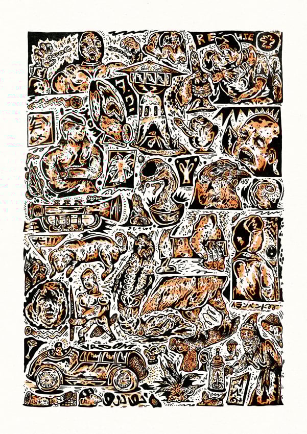 Black and orange Risograph print,